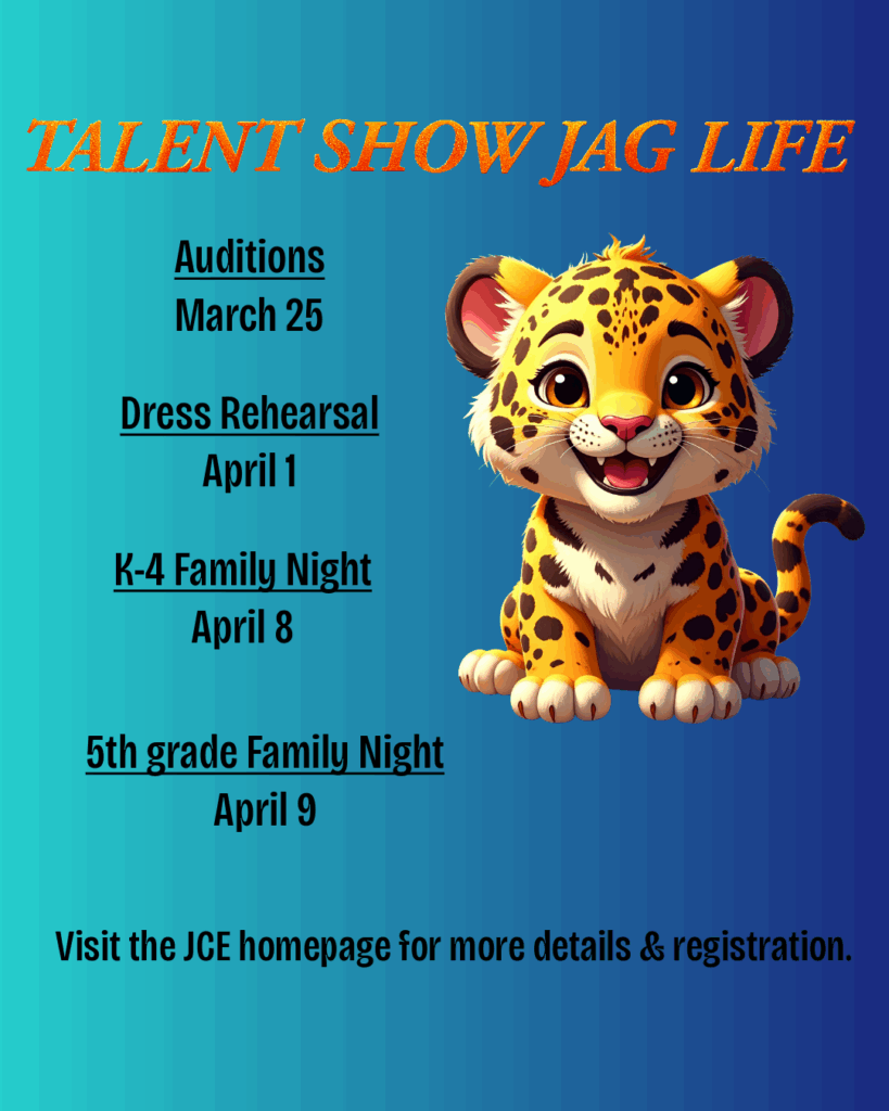 If you are attending a class party, volunteering at the school, or attending a school field trip, please do not bring younger siblings. While we love seeing our future Jaguars, we have found that it can often be disruptive and distract from our JCE Jaguars enjoying their celebration, field trips, or instructional time. We feel that it is important to honor the time our students have to learn and/or celebrate with their teachers and don’t want to take the focus from that.