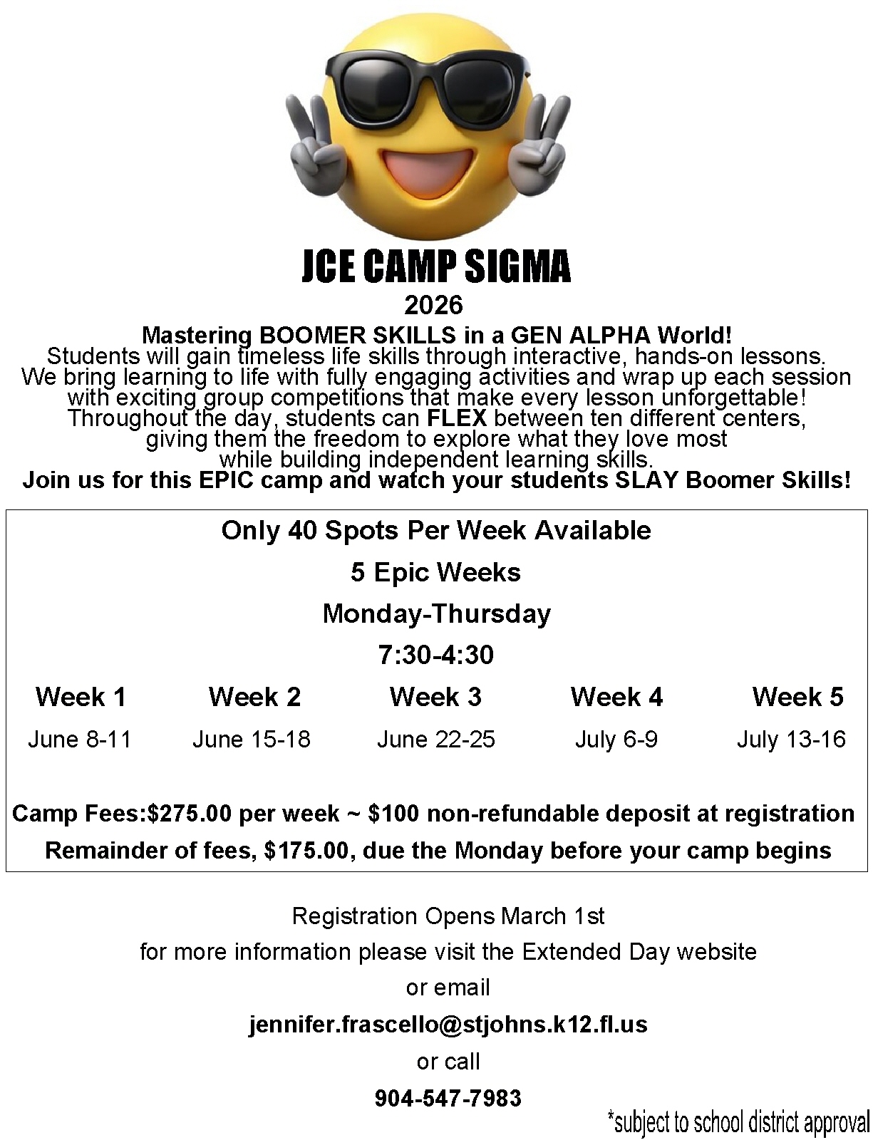 If you are interested in enrolling, please fill out the registration package, read the policy handbook with your student, return to Extended Day via: